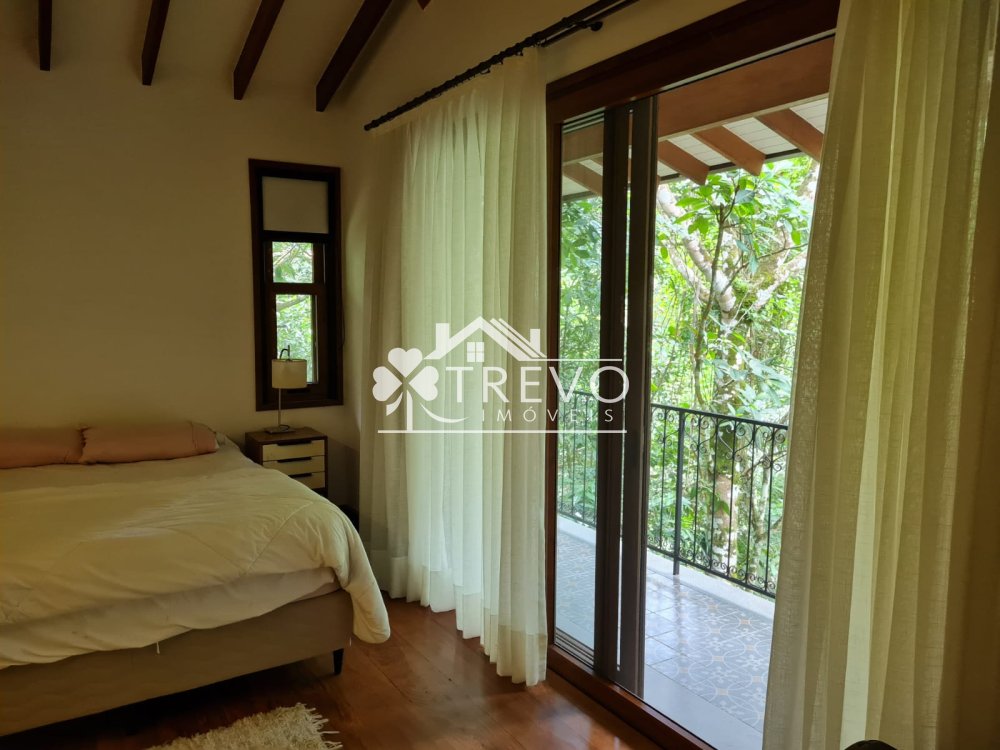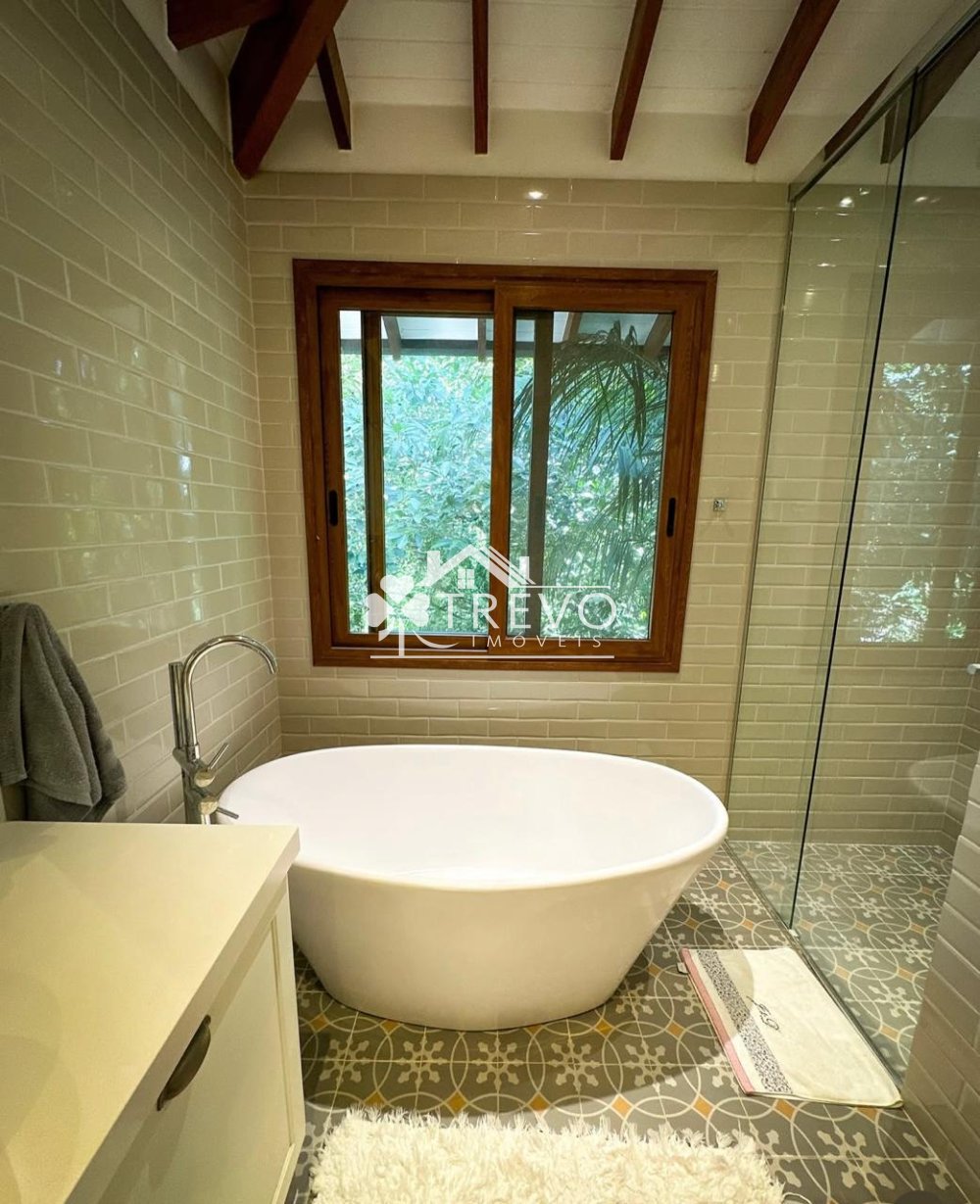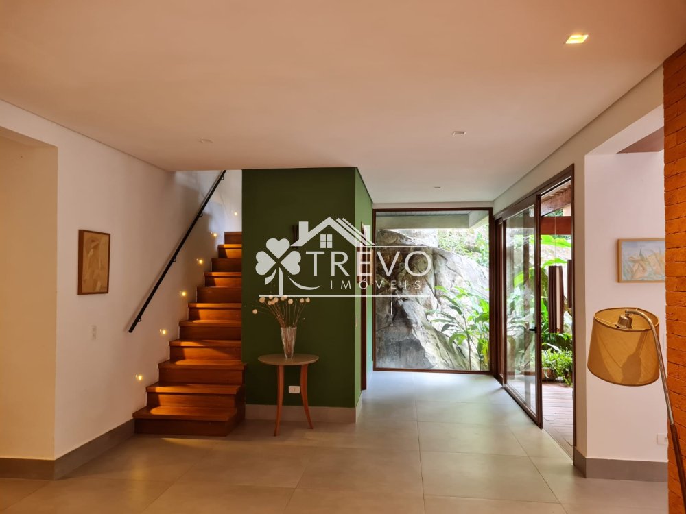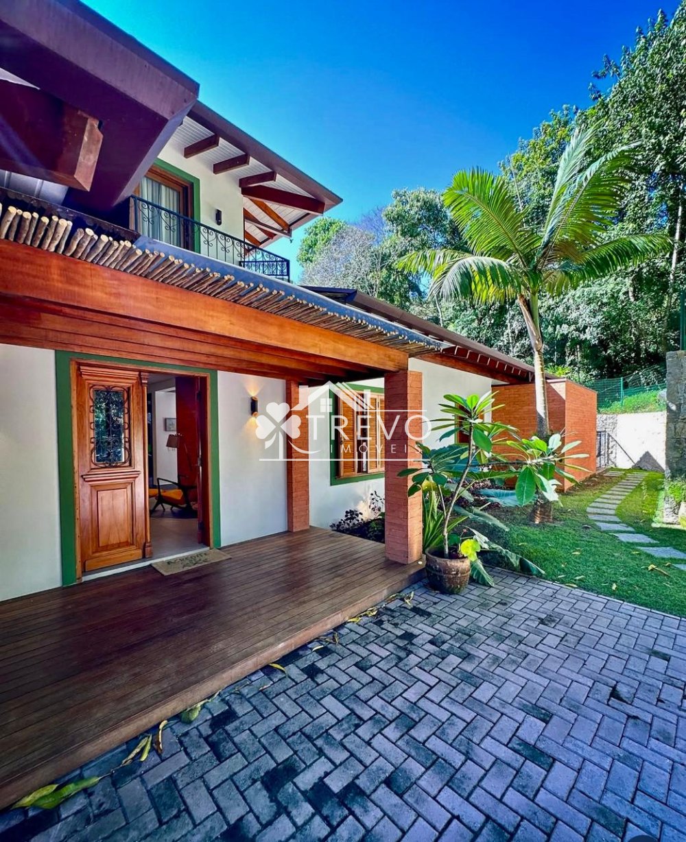 Como diferencial exclusivo, o imóvel possui acesso a uma charmosa cachoeira ao fundo do terreno, oferecendo uma experiência única de contato com a natureza, com toda a segurança de um residencial fechado.