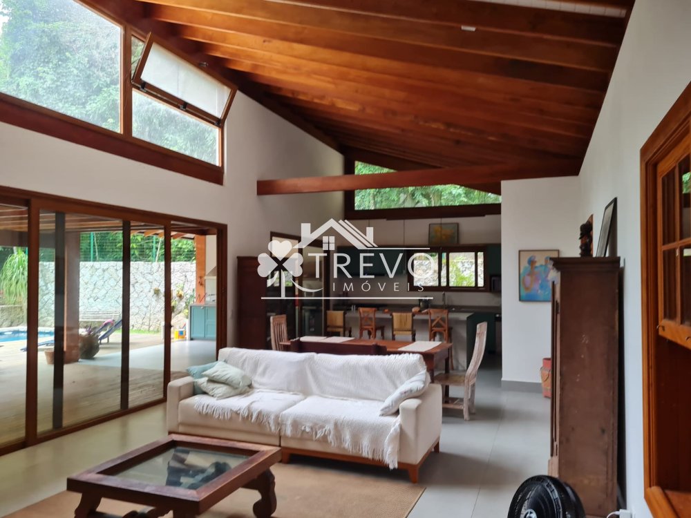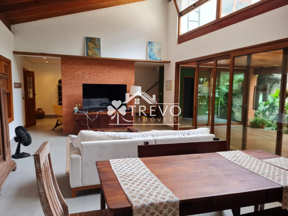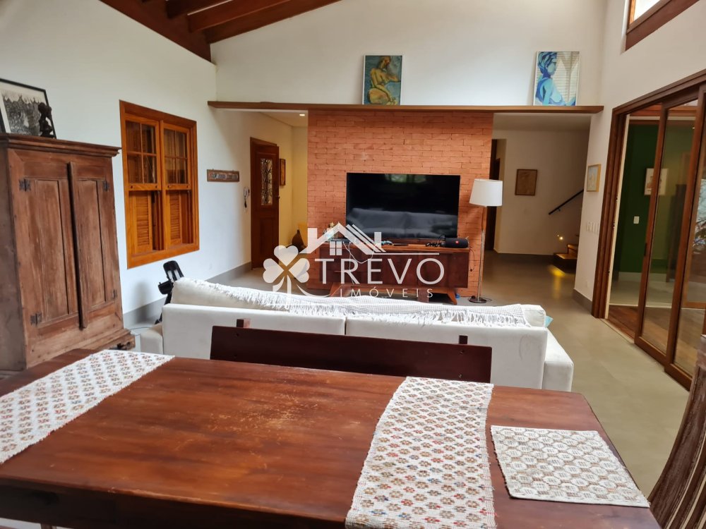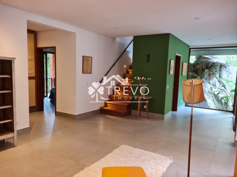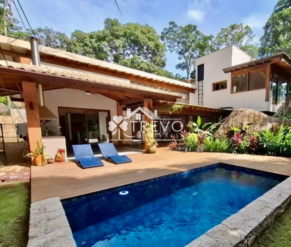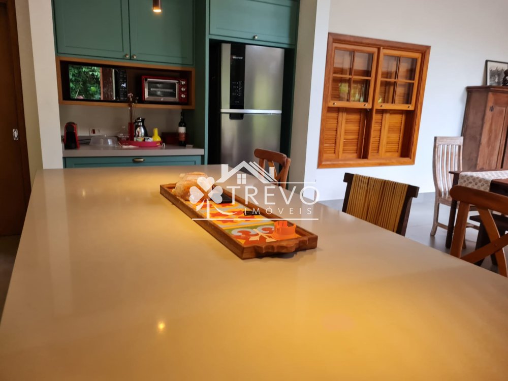 Como diferencial exclusivo, o imóvel possui acesso a uma charmosa cachoeira ao fundo do terreno, oferecendo uma experiência única de contato com a natureza, com toda a segurança de um residencial fechado.